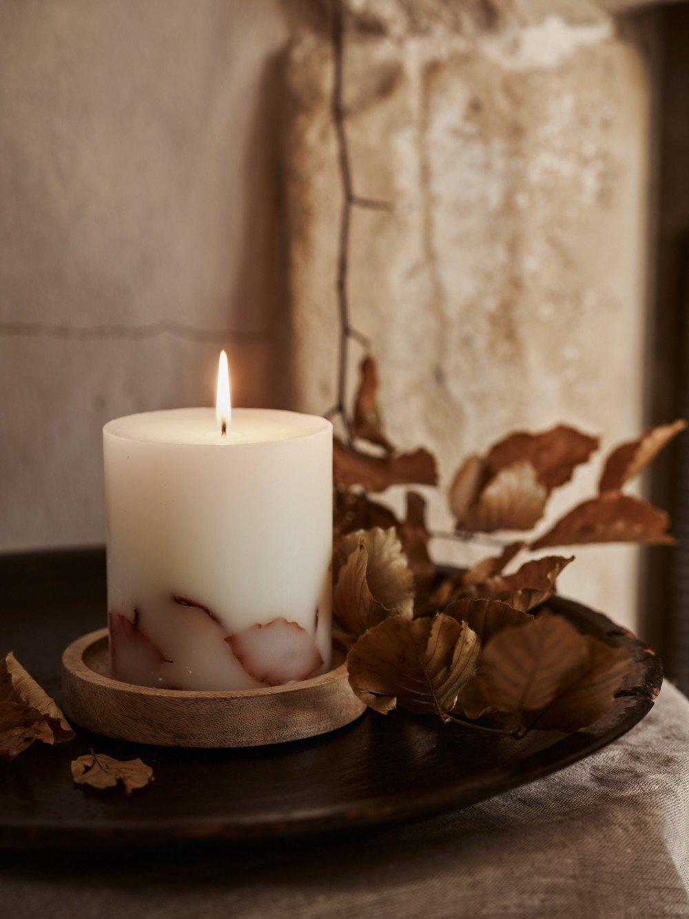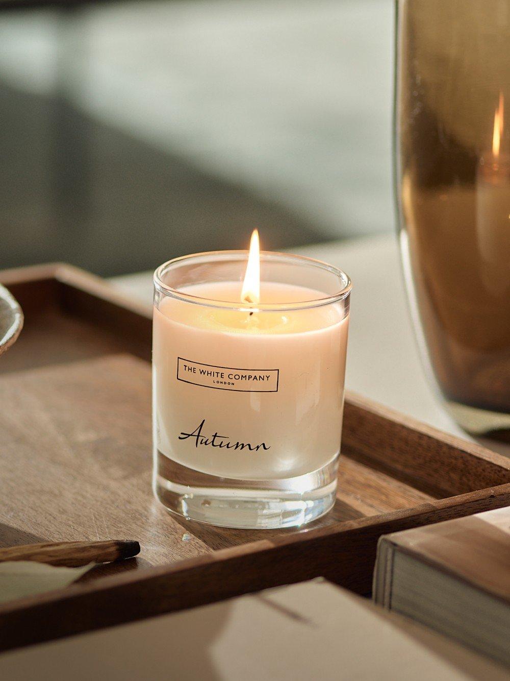 There’s something so instantly relaxing about the warming glow from a candle. Even more so on an autumnal evening. The near stillness of the flame with its soft sway, a peaceful contrast to the wind rustling the trees outside. Just as calming is the act of lighting it – the ritual involved. The sound of striking the match. Hovering it over the wick until it catches. Gently blowing out the match. Then, as the relaxing scent starts to fill the room and the candlelight casts its gleam, it’s an open invitation to unwind.